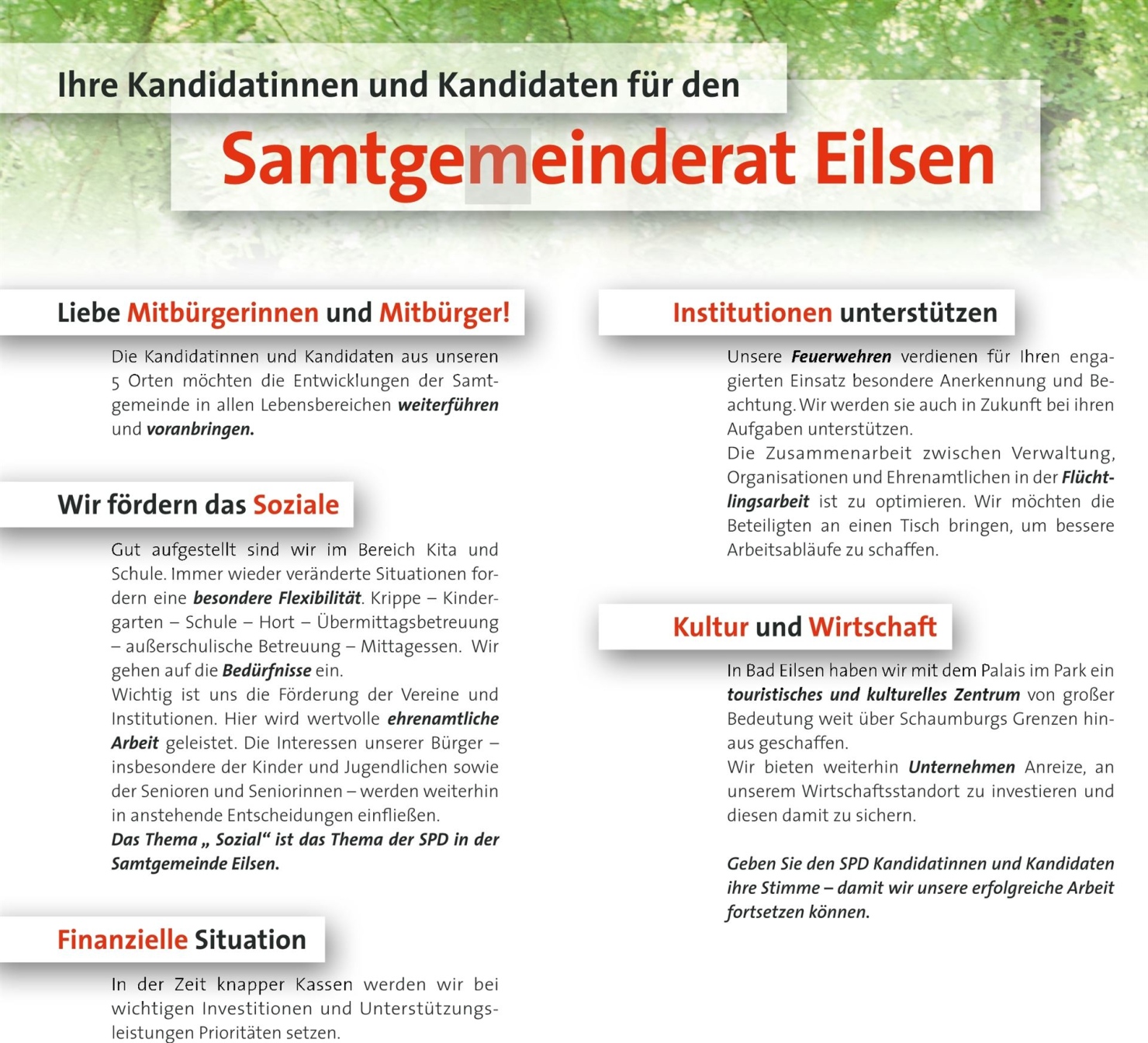 ARCHIV - Die Kandidatinnen und Kandidaten aus unseren 5 Orten möchten die Entwicklungen der Samtgemeinde in allen Lebensbereichen weiterführen und voranbringen.